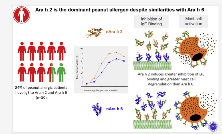 Ara h 2 specific-IgE (sIgE) is to date the best serologic marker to diagnose peanut allergy. Ara h 6 shares ~60% sequence identity and multiple epitopes with Ara h 2.