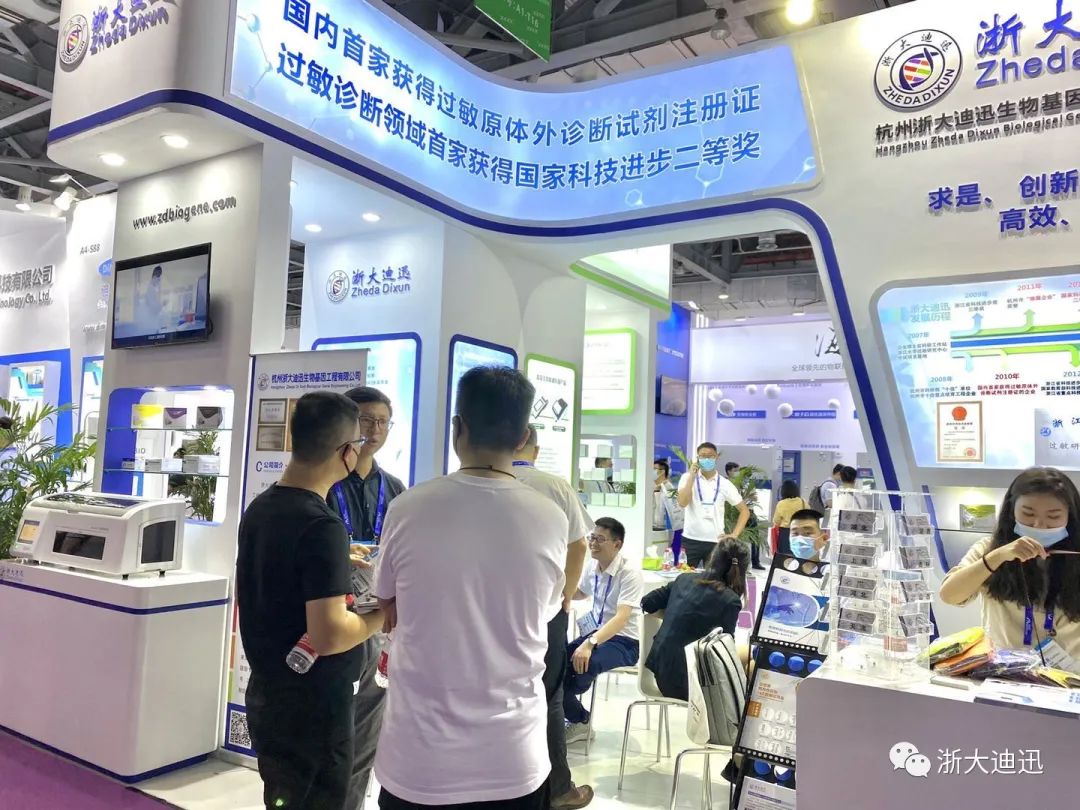 作為國(guó)內(nèi)首家獲得過敏原體外診斷試劑SFDA注冊(cè)證的生產(chǎn)企業(yè),浙大迪迅專注過敏診斷十七載,秉承“求是、創(chuàng)新、高效、卓越”理念,為過敏性疾病患者提供最優(yōu)質(zhì)的過敏原檢測(cè)服務(wù)。浙大迪迅在本次博覽會(huì)設(shè)立特裝展臺(tái),隆重推出本公司新系列產(chǎn)品--100項(xiàng)食物特異性抗體IgG檢測(cè)試劑盒(蛋白芯片法),受到眾多著名專家學(xué)者和經(jīng)銷商伙伴的強(qiáng)烈關(guān)注,紛紛前來(lái)觀摩學(xué)習(xí),交流經(jīng)驗(yàn)。