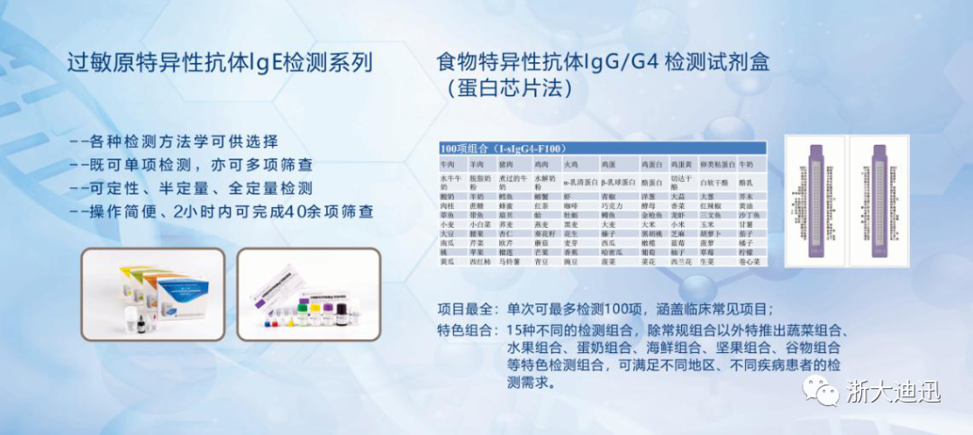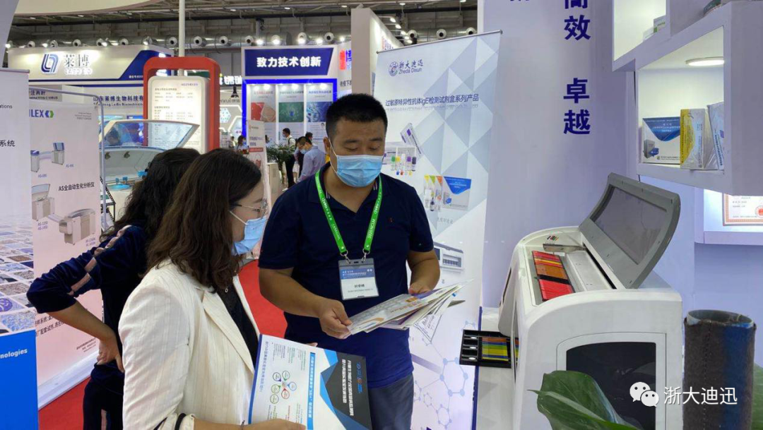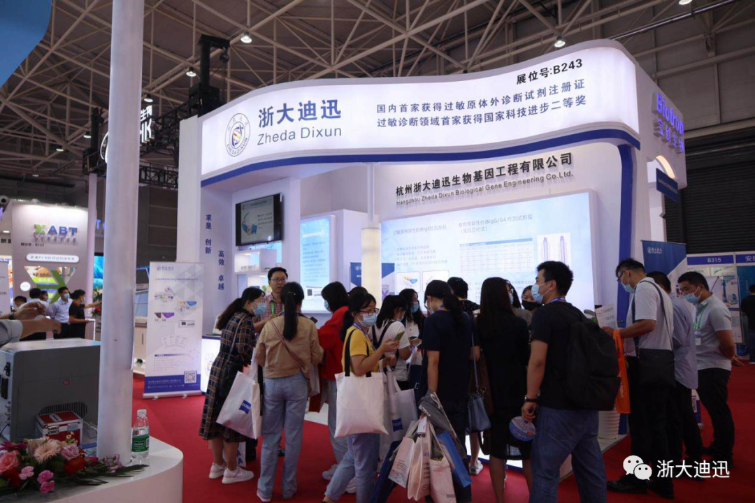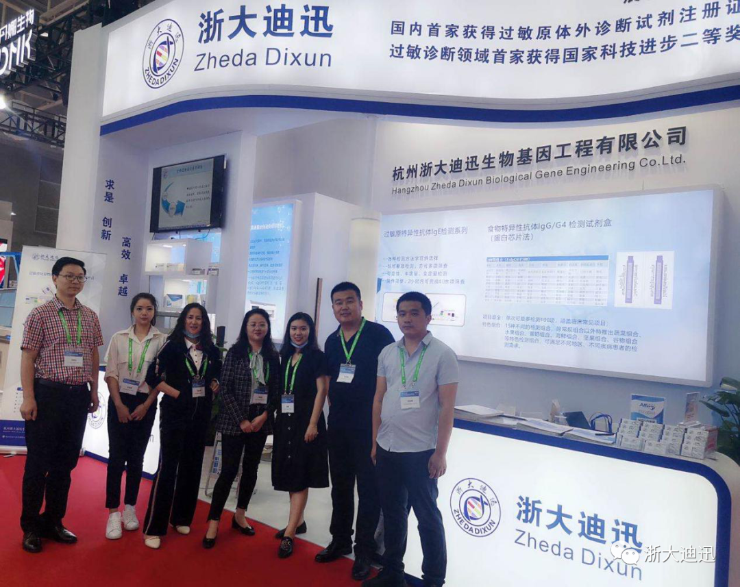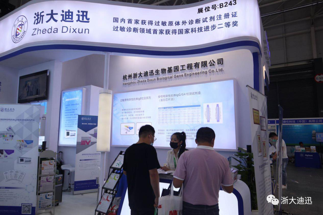 100項食物特異性抗體IgG/G4檢測試劑盒(蛋白芯片法)。會中,浙大迪迅展位現場熙熙攘攘,前來參觀指導的專家領導絡繹不絕。
